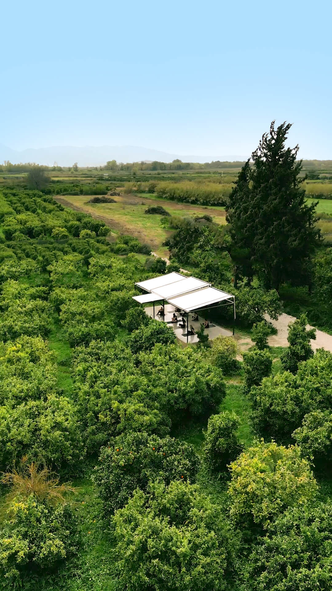 Σε μικρή απόσταση με τα πόδια από το κατάλυμα, μέσα σε έναν ήσυχο πορτοκαλεώνα, βρίσκεται το ειδικά διαμορφωμένο retreat deck — που προσφέρει απόλυτη ιδιωτικότητα και ατμόσφαιρα βαθιάς γαλήνης. Περιτριγυρισμένο από καταπράσινη φύση, το κελάηδημα των πουλιών και θέα στο βουνό, αποτελεί ένα ισχυρό σκηνικό για καθημερινές πρακτικές, κύκλους και θεματικά εργαστήρια.