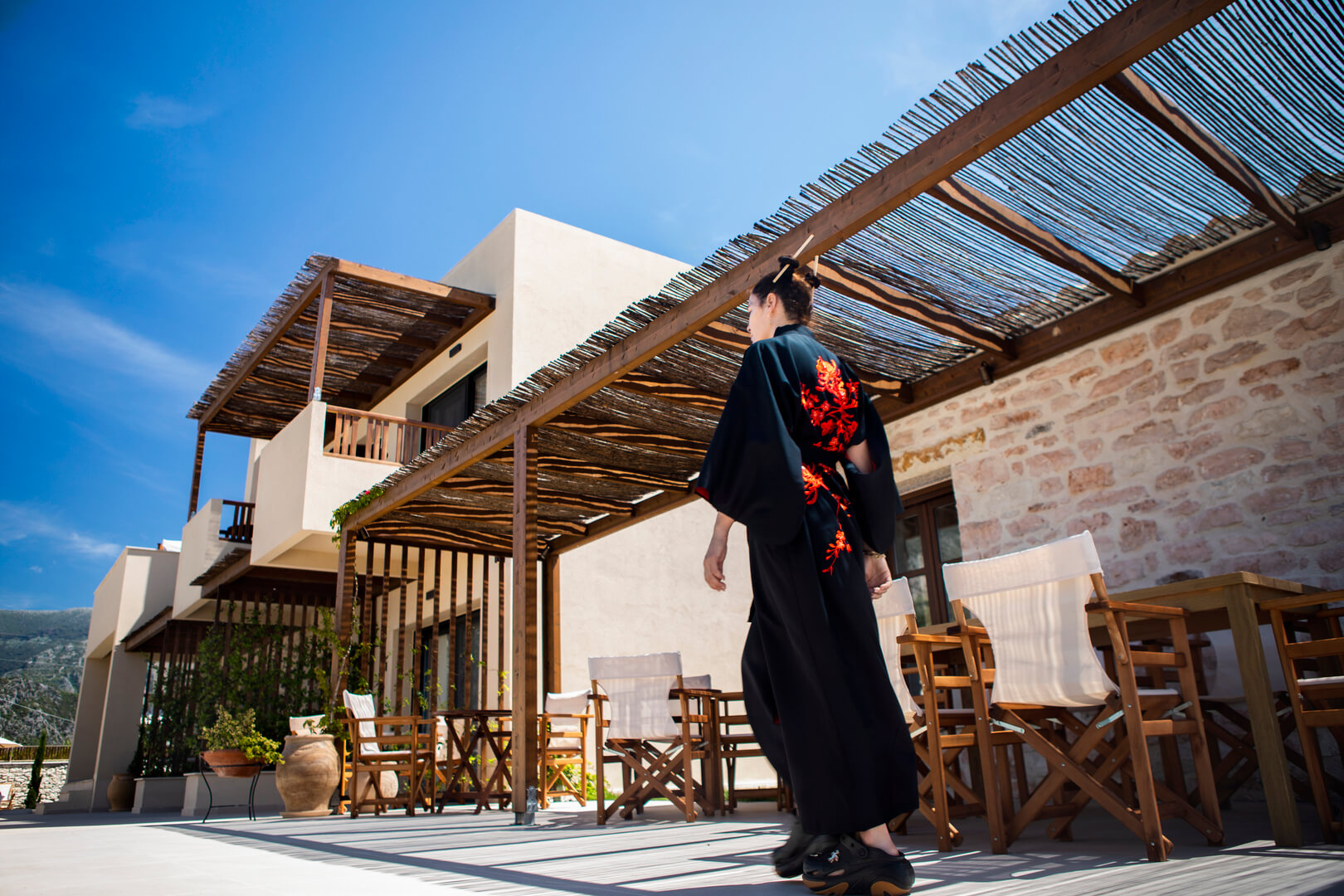 One summer, she finally followed that childhood pull all the way to Greece. She chose Atman Eco Lodge as her sanctuary—a calm world hidden among citrus groves and mountains, where the air smelled of orange blossoms and the silence felt like a deep breath.