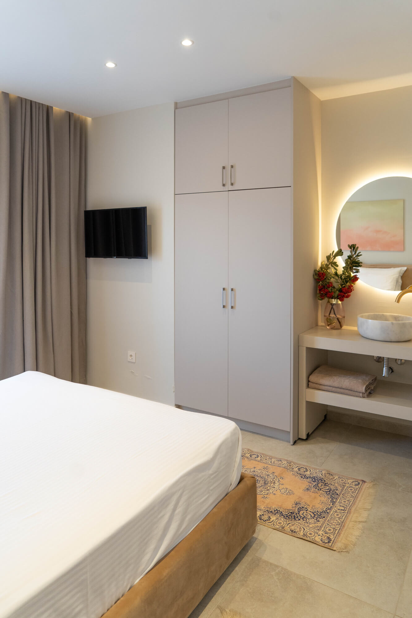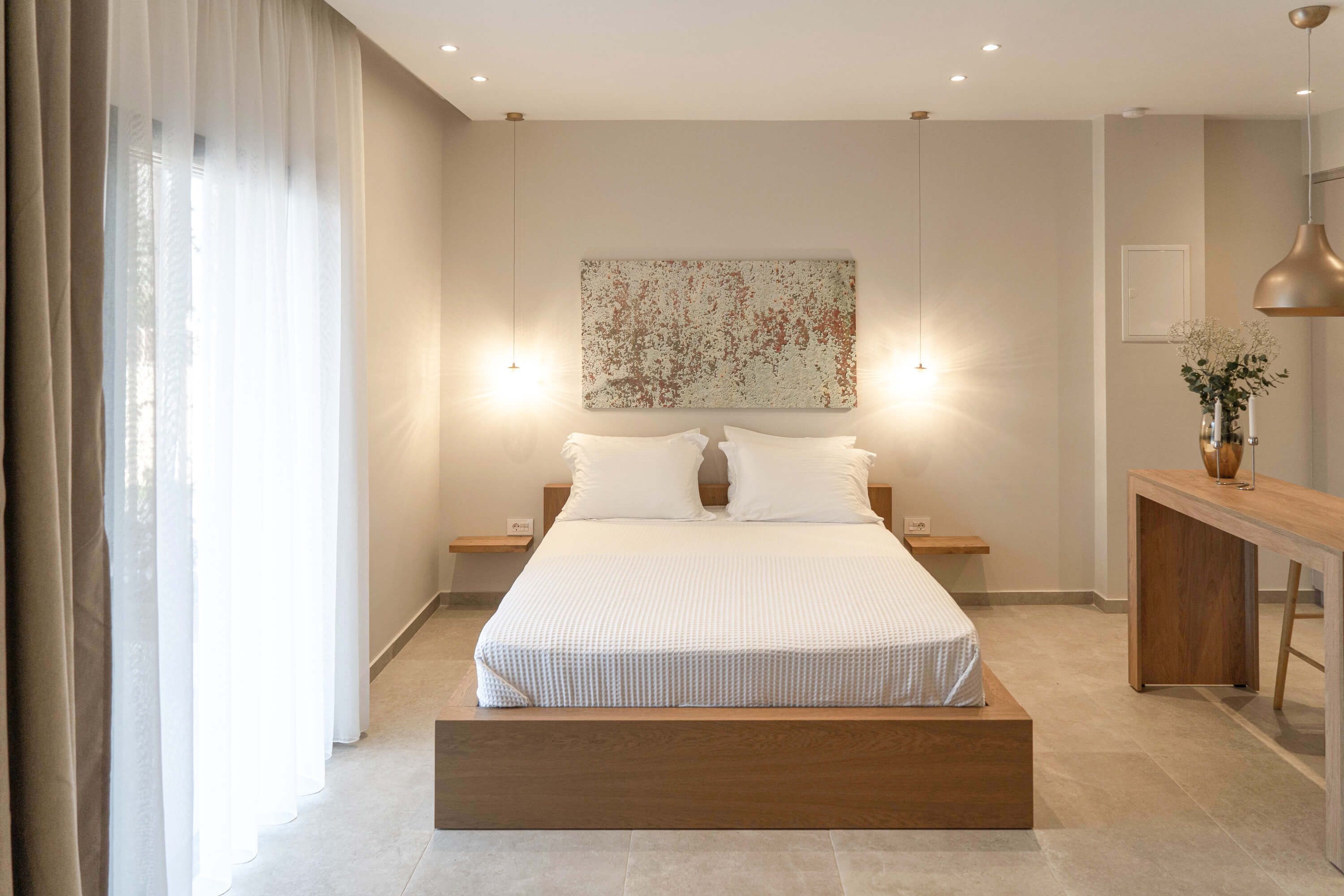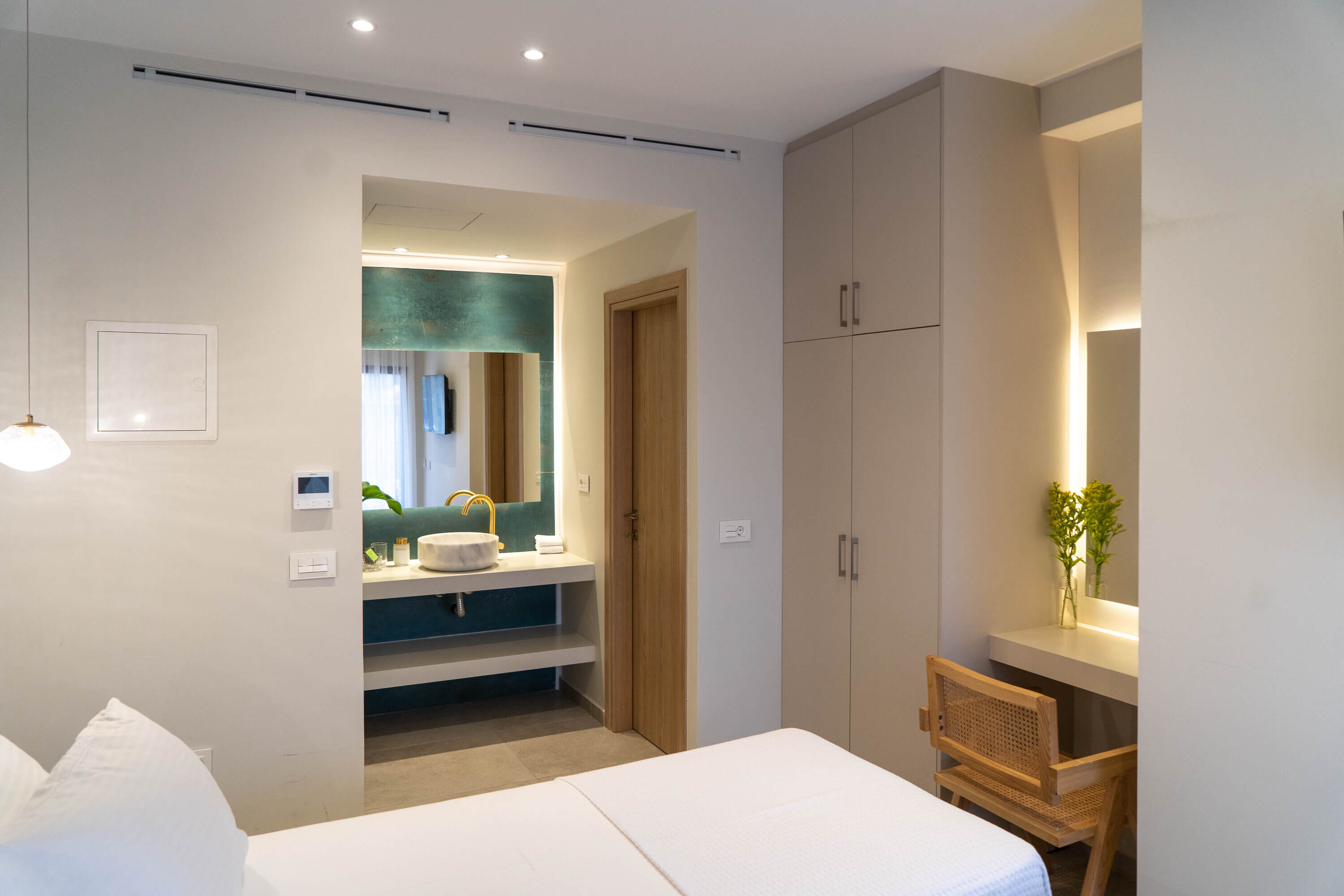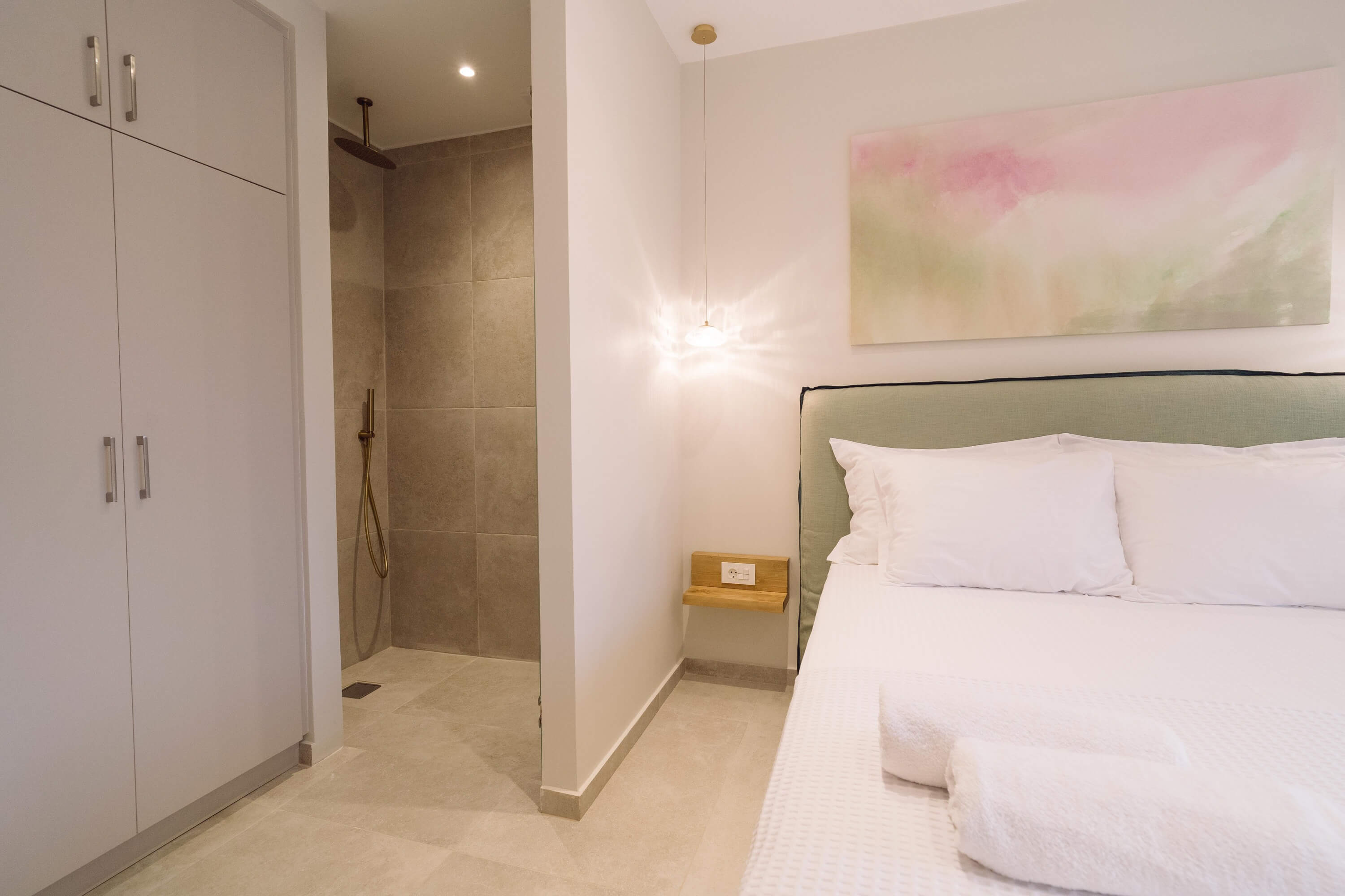 Το δωμάτιο μπορεί να φιλοξενήσει 2 άτομα σε διπλό κρεβάτι. Διαθέτει ξεχωριστό ντους, ενώ το WC και ο νιπτήρας είναι σχεδιασμένα με προδιαγραφές ΑΜΕΑ. Το δωμάτιο εξυπηρετεί άτομα με αναπηρίες και προβλήματα κινητικότητας. Μπροστά από το δωμάτιο, υπάρχει ιδιωτικός εξωτερικός χώρος σκιασμένος από μία πέργκολα.