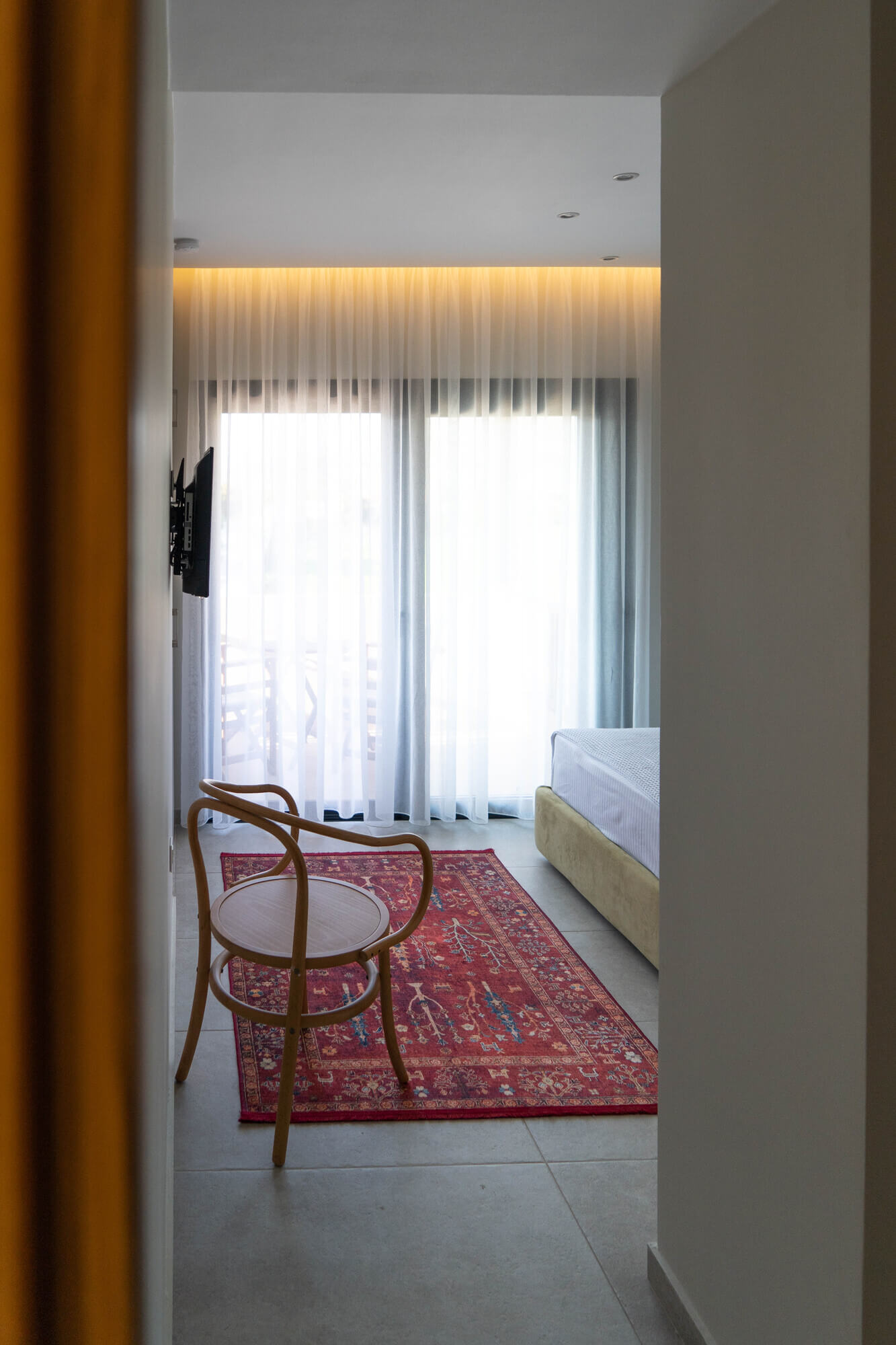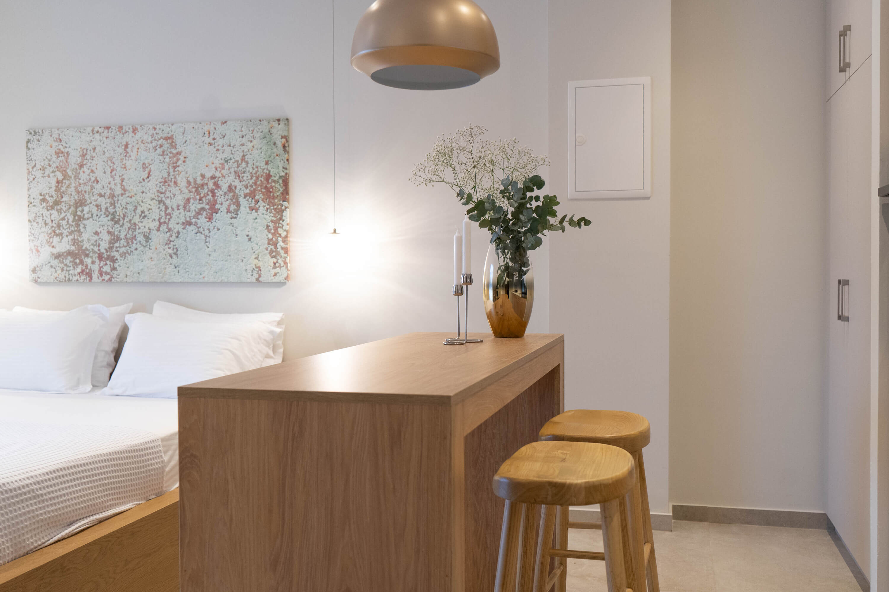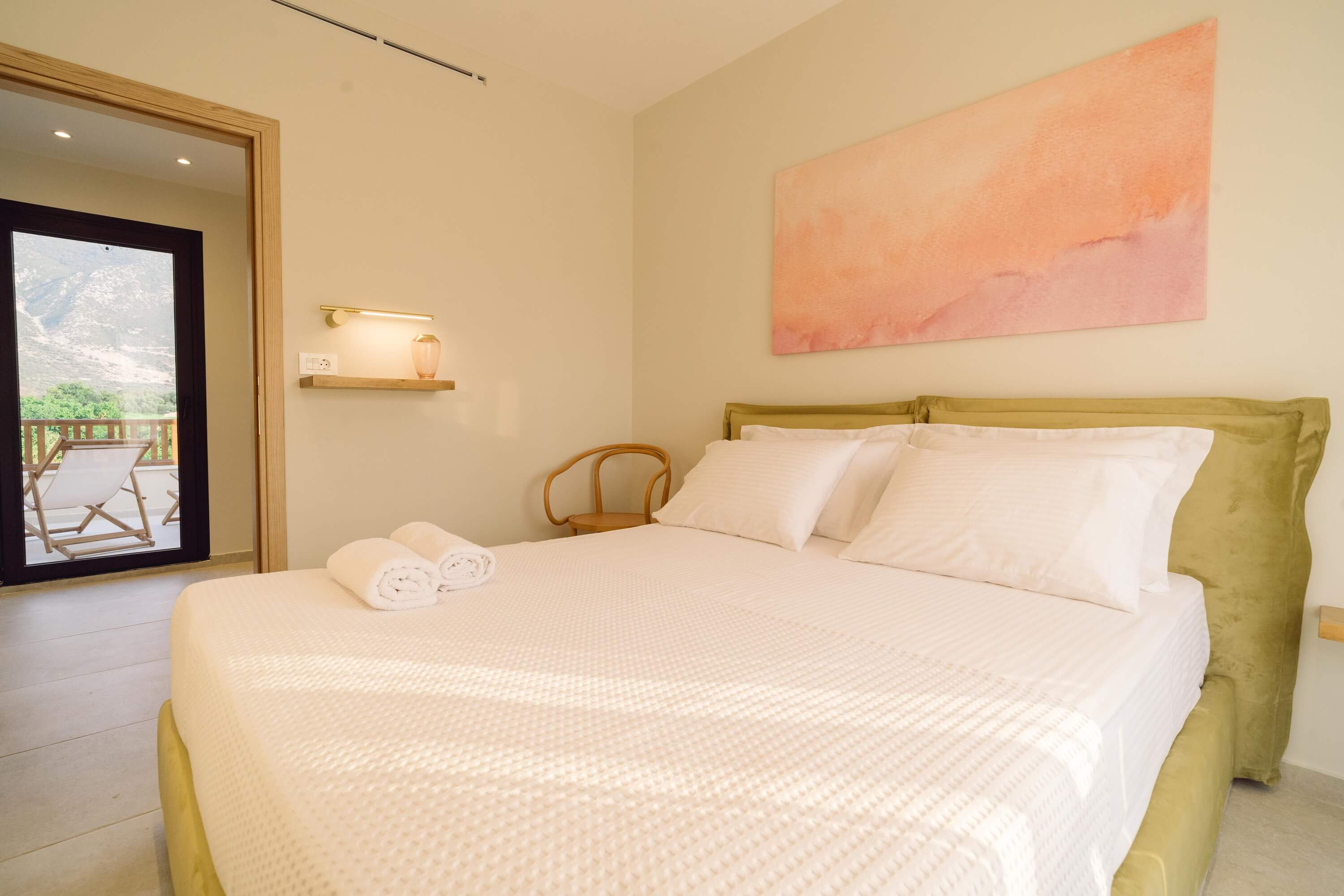 Το δωμάτιο μπορεί να φιλοξενήσει 2 άτομα σε διπλό κρεβάτι. Διαθέτει ξεχωριστό ντους, ενώ το WC και ο νιπτήρας είναι σχεδιασμένα με προδιαγραφές ΑΜΕΑ. Το δωμάτιο εξυπηρετεί άτομα με αναπηρίες και προβλήματα κινητικότητας. Μπροστά από το δωμάτιο, υπάρχει ιδιωτικός εξωτερικός χώρος σκιασμένος από μία πέργκολα.