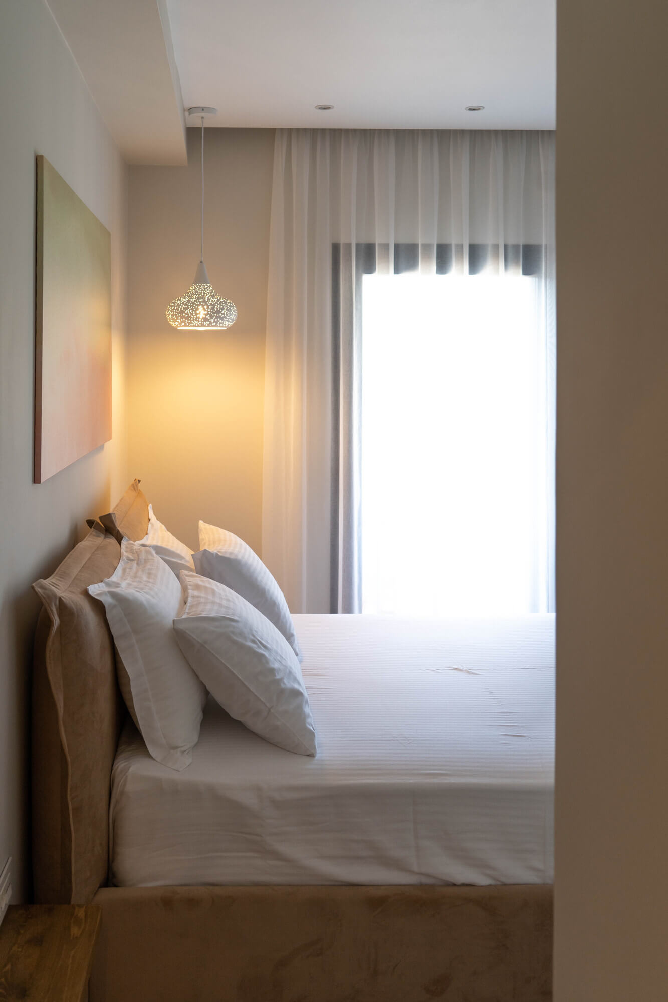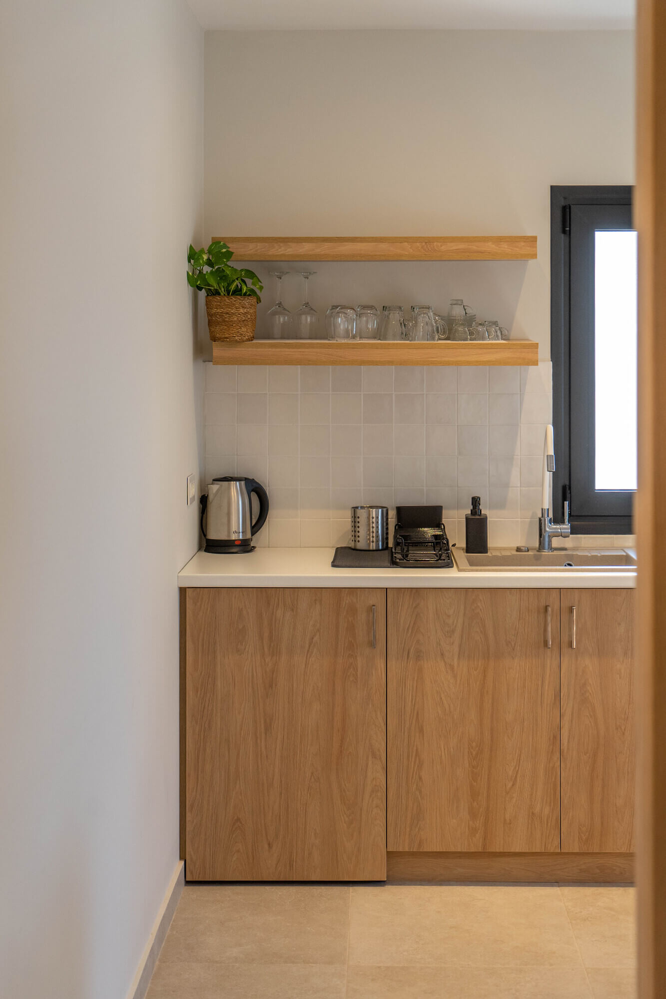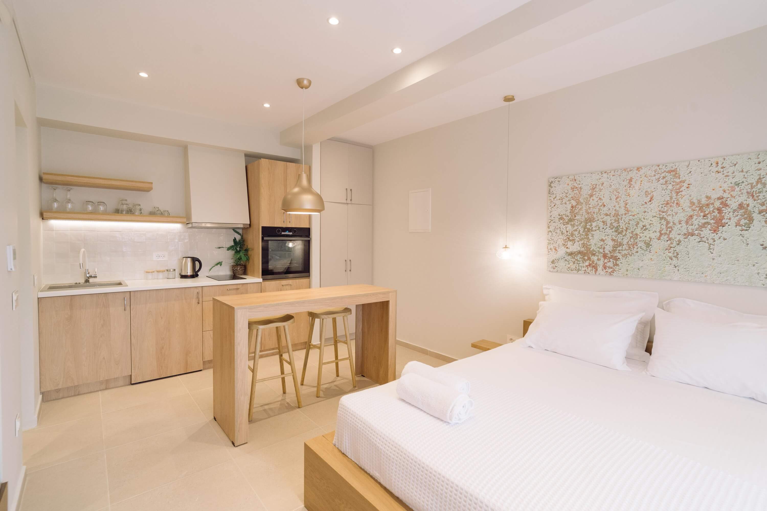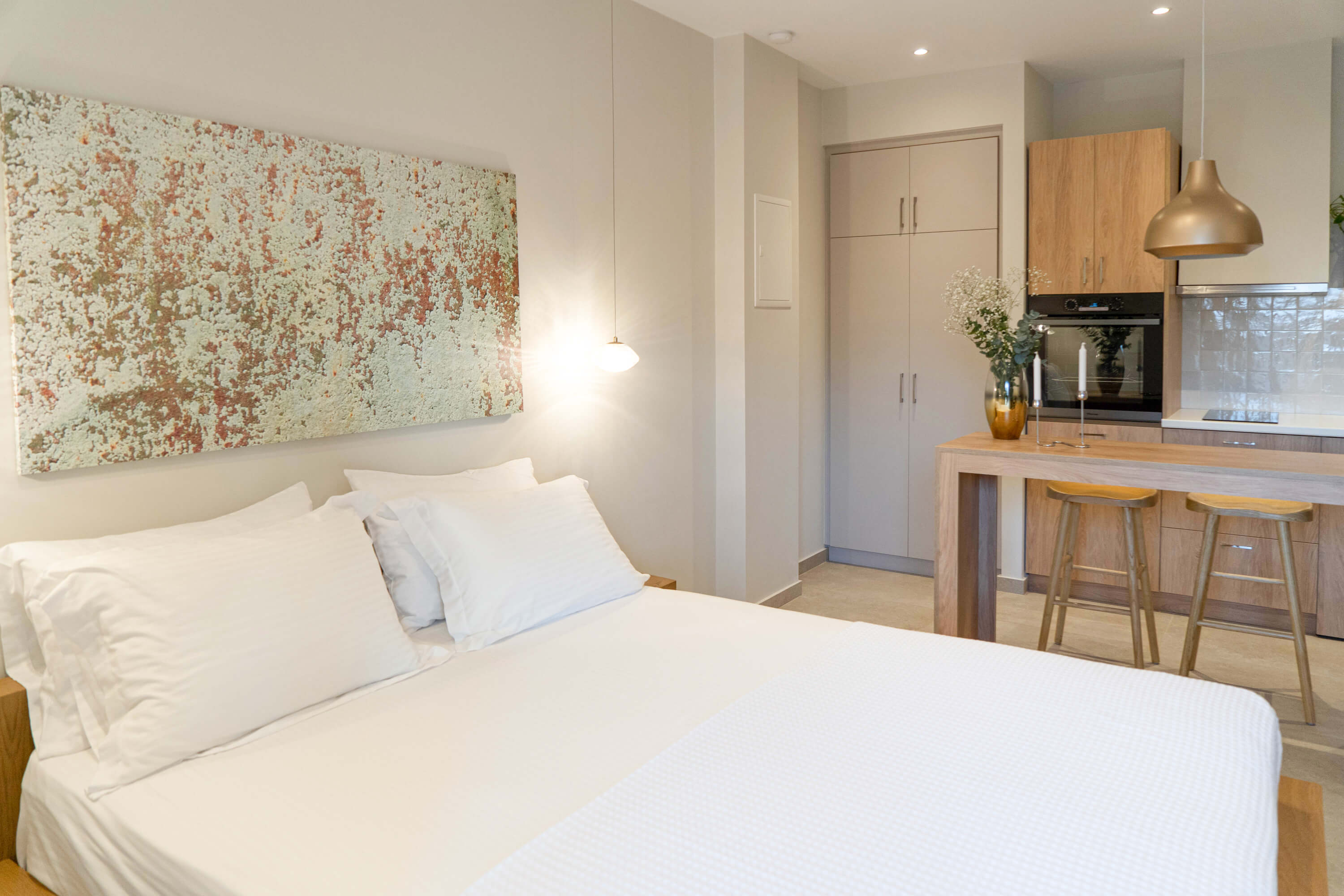 Το δωμάτιο μπορεί να φιλοξενήσει 2 άτομα σε διπλό κρεβάτι. Διαθέτει ξεχωριστό ντους, ενώ το WC και ο νιπτήρας είναι σχεδιασμένα με προδιαγραφές ΑΜΕΑ. Το δωμάτιο εξυπηρετεί άτομα με αναπηρίες και προβλήματα κινητικότητας. Μπροστά από το δωμάτιο, υπάρχει ιδιωτικός εξωτερικός χώρος σκιασμένος από μία πέργκολα.