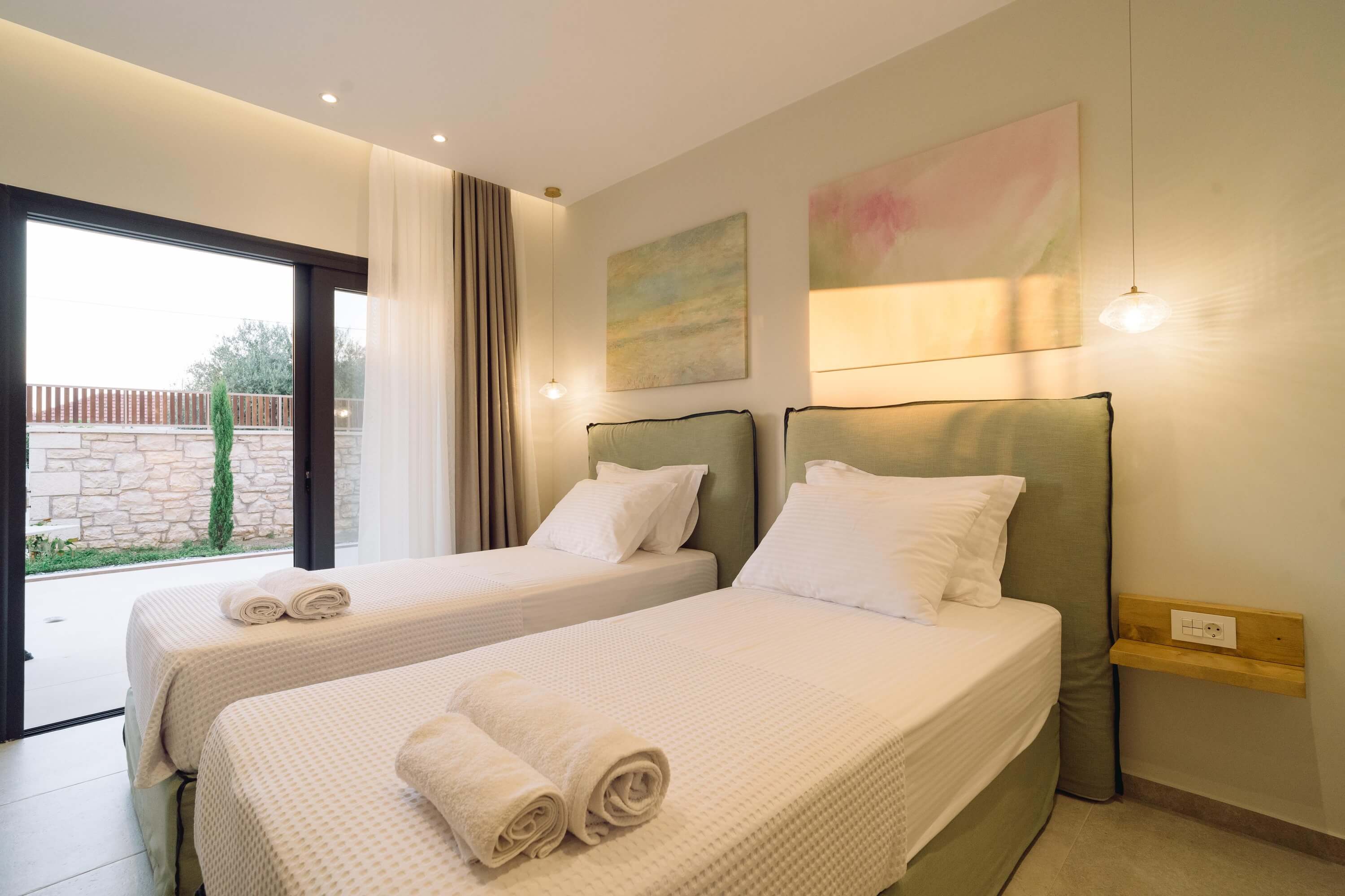 Η Σουίτα Δύο Υπνοδωματίων 7 φιλοξενεί 4 άτομα σε δύο υπνοδωμάτια με διπλά κρεβάτια. Κάθε υπνοδωμάτιο διαθέτει το δικό του ιδιωτικό μπαλκόνι και μπάνιο με ντους βροχής, WC και εξωτερικό νιπτήρα. Υπάρχει ένα ξεχωριστό σαλόνι με πλήρως εξοπλισμένη κουζίνα, τραπεζαρία και τζάκι.