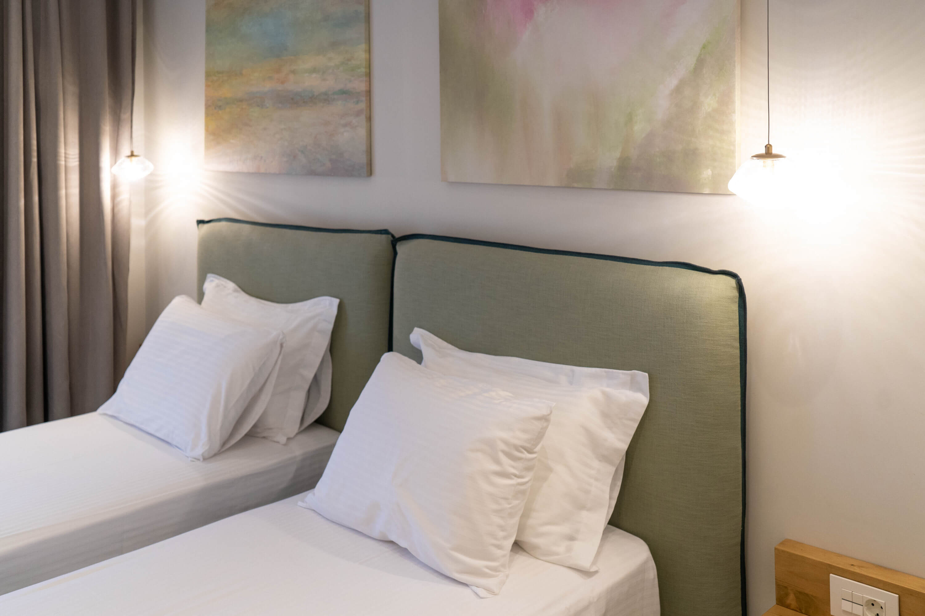 Το Deluxe Twin μπορεί να φιλοξενήσει 2 άτομα σε δύο μονά κρεβάτια. Διαθέτει ξεχωριστό ντους βροχής, WC και εξωτερικό νιπτήρα. Μπροστά από το δωμάτιο, υπάρχει ιδιωτικός εξωτερικός χώρος σκιασμένος από μία πέργκολα.